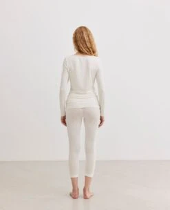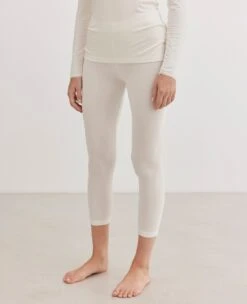 Soft leggings with 3/4 legs. The waistband is elastic. Outer leg length in size M: 77 cm.