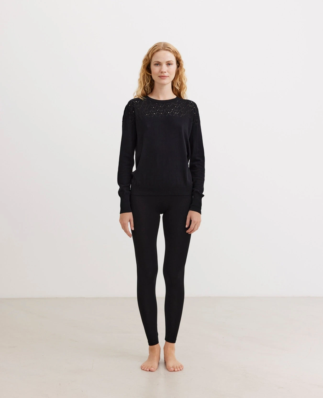 Long soft leggings with an elastic waistband. Outer leg length in size M: 92 cm.