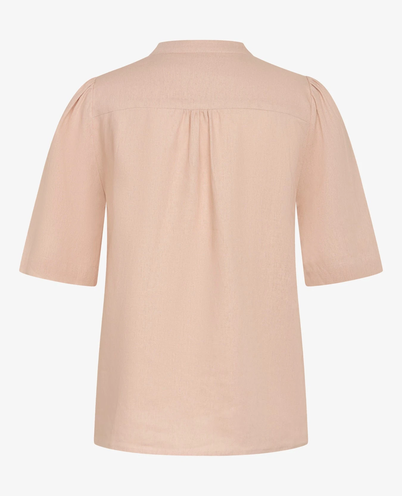Simple in shape, this blouse will bring contemporary ease to your transitional selection. The classic design is completed with mandarin collar and buttons down front.