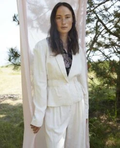 Combining ease and elegance, these moderne trousers are a perfcet choice for the season to come. The silhouette features wide legs, hook and bar closure and pockets at side seam. A perfect match with the Avelin jacket.