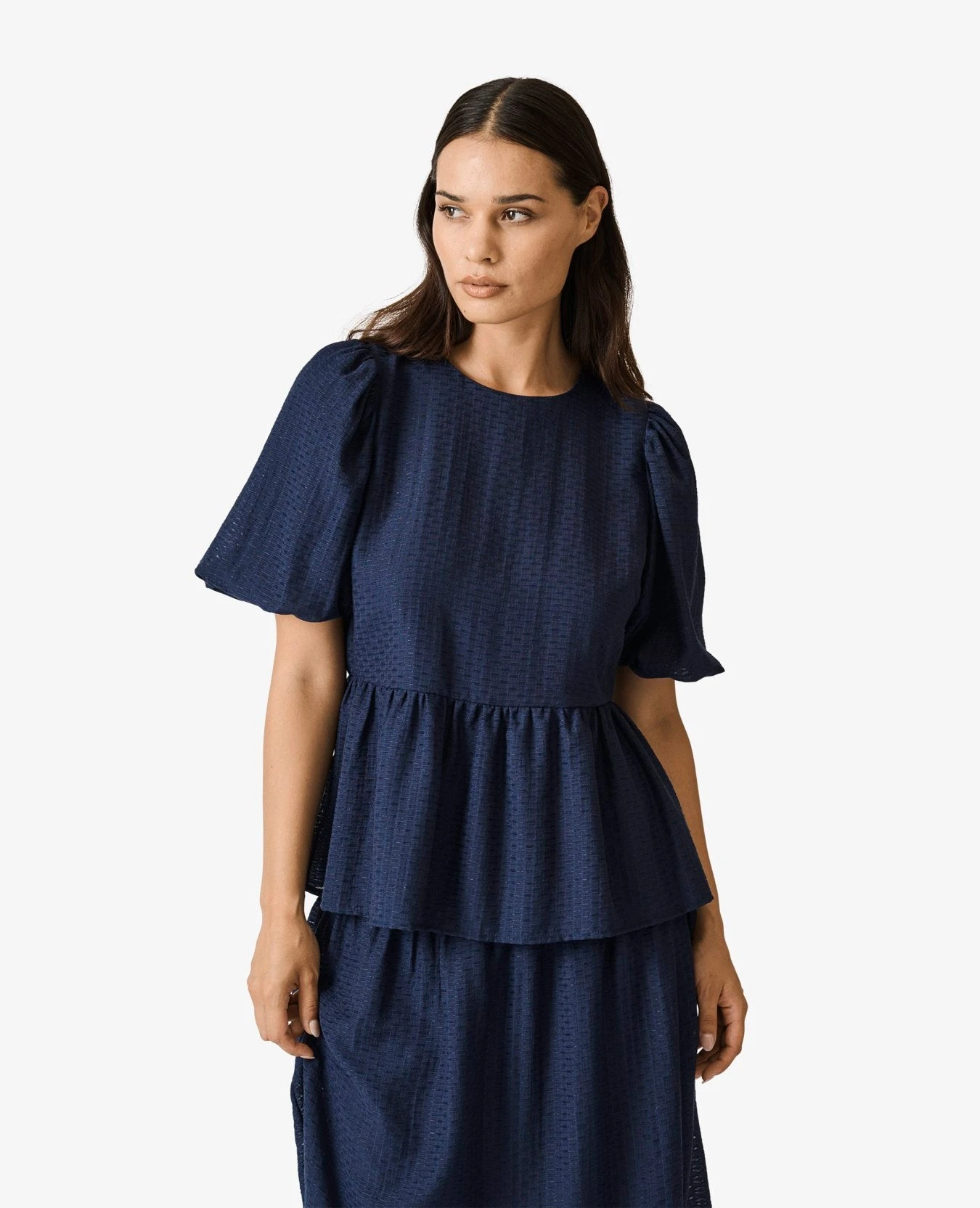 Introducing the CAMILLA top, a stylish and elegant addition to your wardrobe. Crafted from a white fabric, this top features a unique puff sleeve design that adds a touch of sophistication. The peplum hem adds a feminine and flattering silhouette, making it perfect for both casual and formal occasions. Made from a blend of 72% viscose and 28% polyamide, with a 100% viscose lining, this top ensures comfort and durability. Elevate your style with the ‘CAMILLA’ top and make a fashion statement wherever you go.