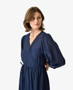 Introducing our elegant dress, crafted from a soft viscose blend in a creamy hue, featuring a beautiful eyelet fabric. The wrap design and waist tie details effortlessly enhance your silhouette, while the elastic cuffs add a touch of comfort. Complete with a coordinating underdress, this dress offers both style and practicality. Made with 72% viscose and 28% polyamide, it ensures a luxurious feel and durability. Elevate your look with this versatile dress, perfect for any occasion.