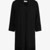 NOA NOOS DRESSY CREPE • V-neck • Wide hems in satin look • Breast darts • Yoke with pleats at the back • Loose fit • 3/4-sleeves with slits • Knee-length 100% viscose