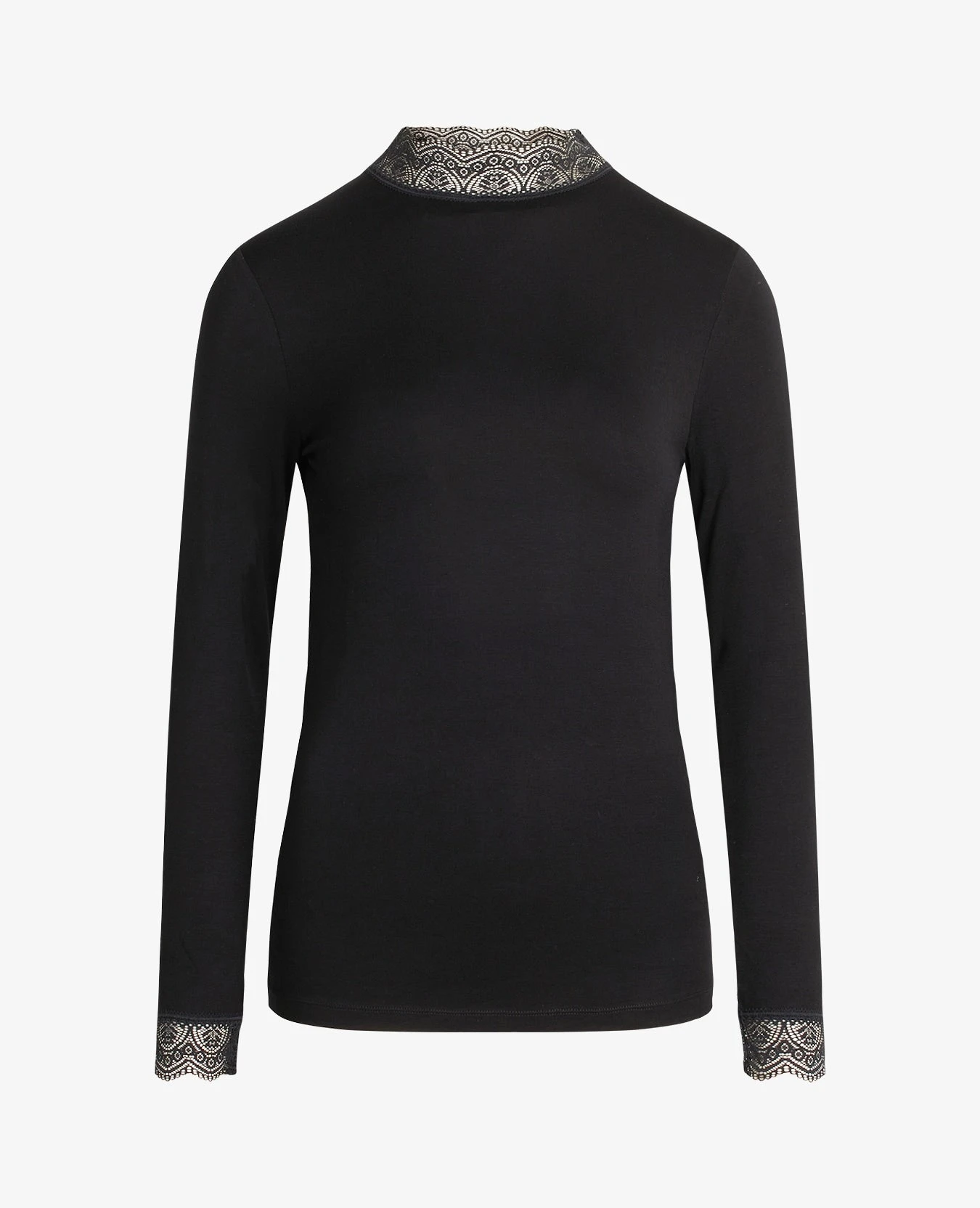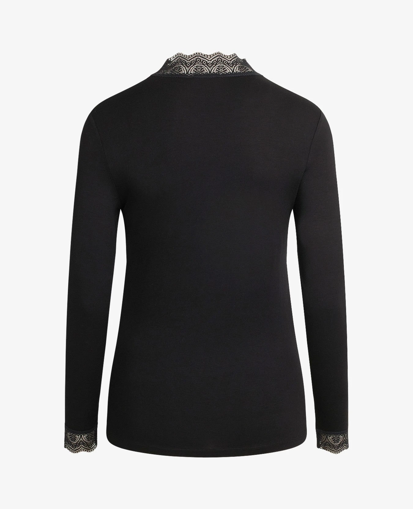 • Wide lace trim around the neck and cuffs