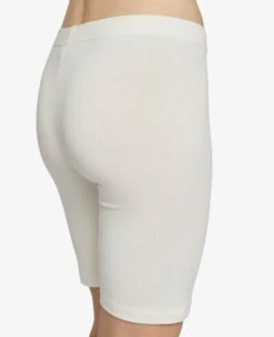 Cycling shorts in soft organic cotton with an elastic waistband. The model is 174 cm and wears a size S. Outer leg length in size M: 45 cm.